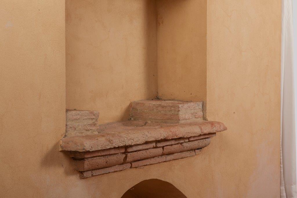 Das kleinere zweigeschossig, mit separater Zufahrt unter hohen Eichen, das große mit drei Geschossen, vorgelagertem Backhaus und Loggia. „Auf halbem Weg zwischen Bauerngehöft und Villa“, sagte der Archäologe. Historische Gemäuer, sorgfältig restauriert. Antike Fußböden. Ungewöhnlich hohe Räume. Ausbaureserven in den Erdgeschossen (ehemals Ställe und Magazine).