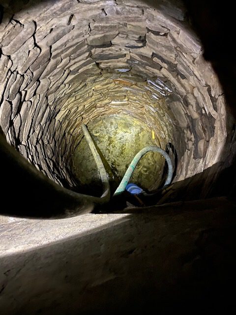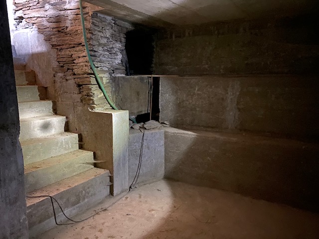 Das Gebäude ist entkernt, der Brunnen gereinigt und der daneben liegende Keller auf Standhöhe ausgeschachtet. Das Gebäude hat bereits komplette neue Fundamente und eine neue Beton-Bodenplatte. Außerdem wurde die Drainage rundherum erneuert und das Haus ist an Wasserversorgung und Abwasserkanal angeschlossen.