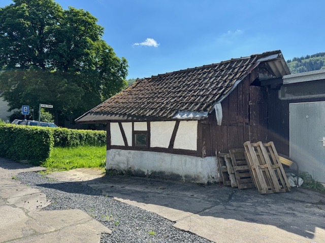 Die Hofanlage besteht aus einem teilweise unterkellerten Wohnhaus mit angebautem Stall und Scheune, einem asphaltierten Hof sowie aus einem Schuppen an der anderen Seite des Hofs bei der Einfahrt. Im Keller befinden sich ein etwa 3 m tiefer Brunnen und ein großer Backofen. Des weiteren befindet sich noch ein Sanitärgebäude neben dem Schuppen, welches zu dem nahebei an der Rur gelegenen Campingplatz gehörte.