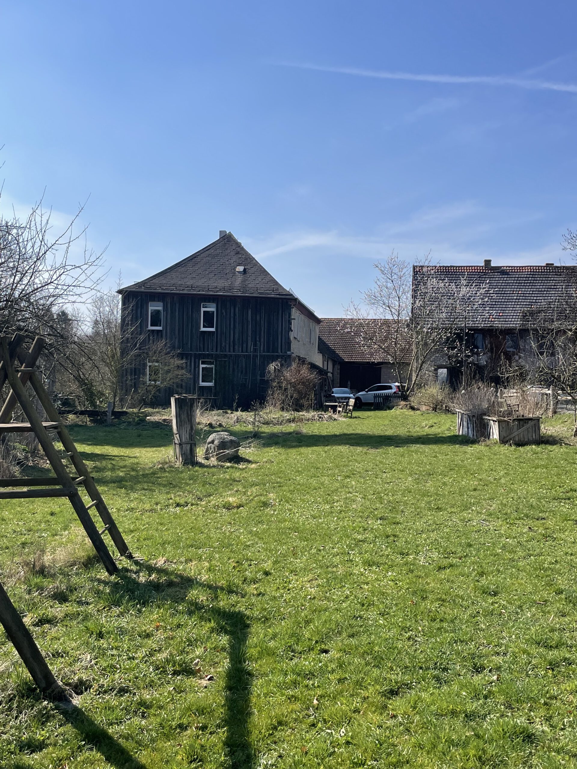Eine große Scheune und Nebengebäude mit geräumiger Werkstatt bieten viel Platz für kreative Handwerker und/oder Pferde, Schafe, Hühner. Die beiden großen Grünflächen können als Weideflächen und Ackerflächen genutzt werden oder als zusätzlichen Bauplatz.
