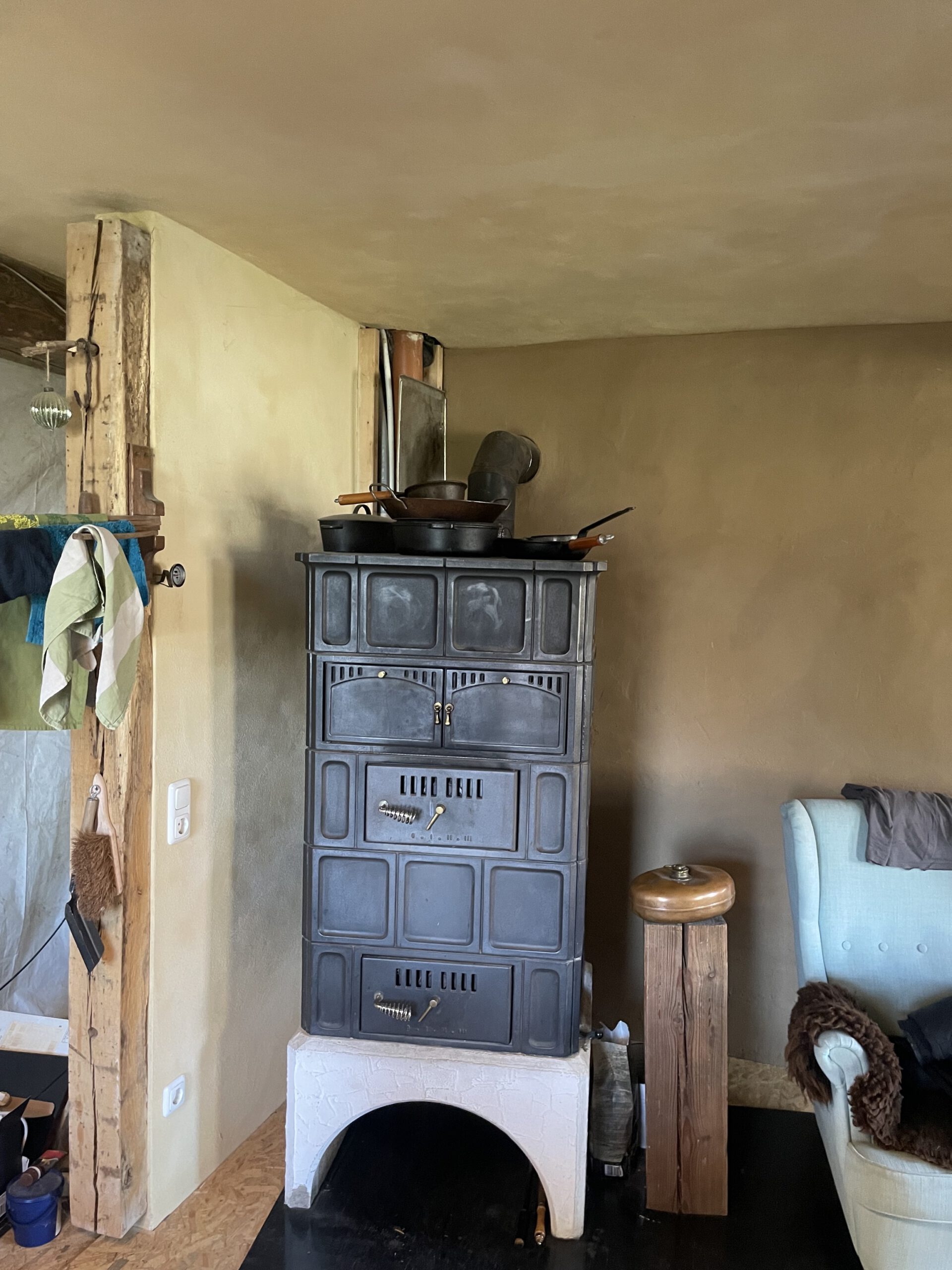 Zurzeit wird das Haus mit holzbefeuerten Speicheröfen der Fa. Rink (RINK Kachelthermo) beheizt.