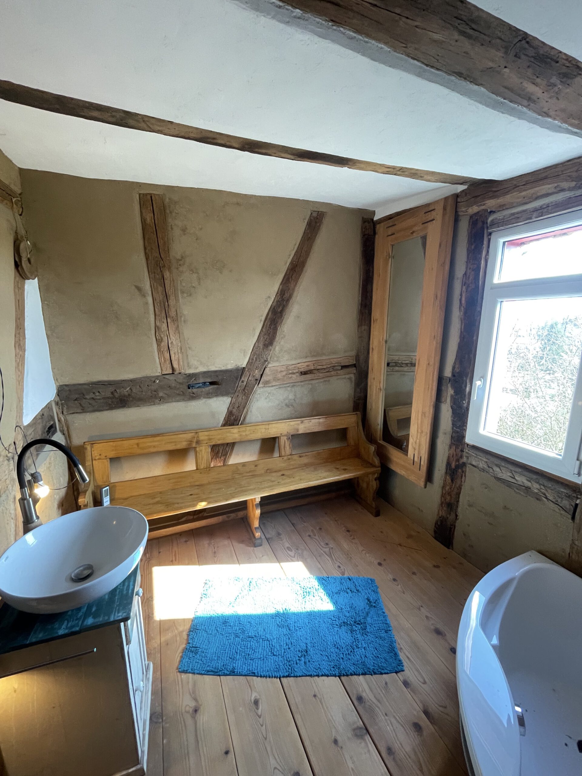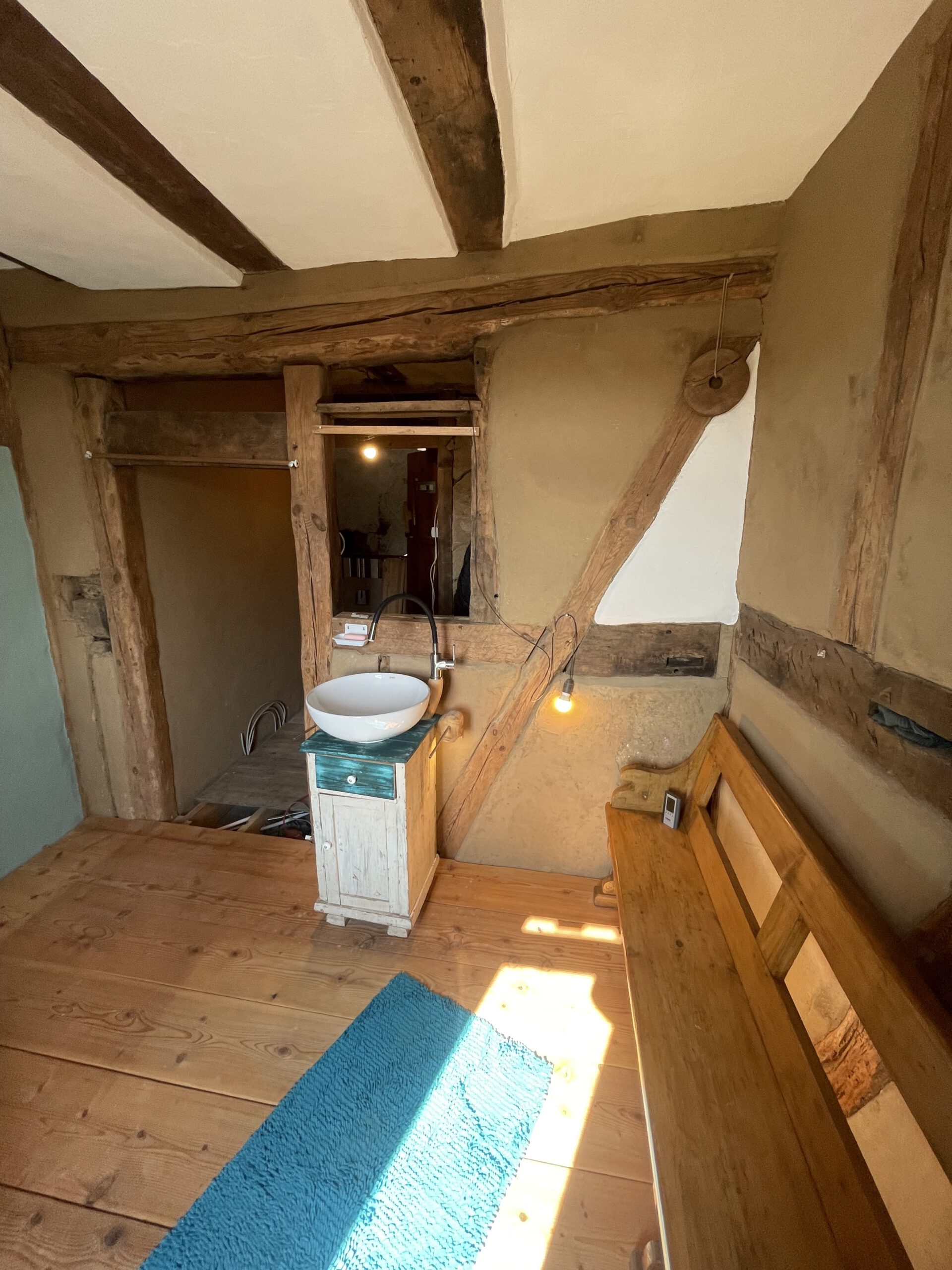 Und natürlich, das Haus ist ein altes Fachwerkhaus.