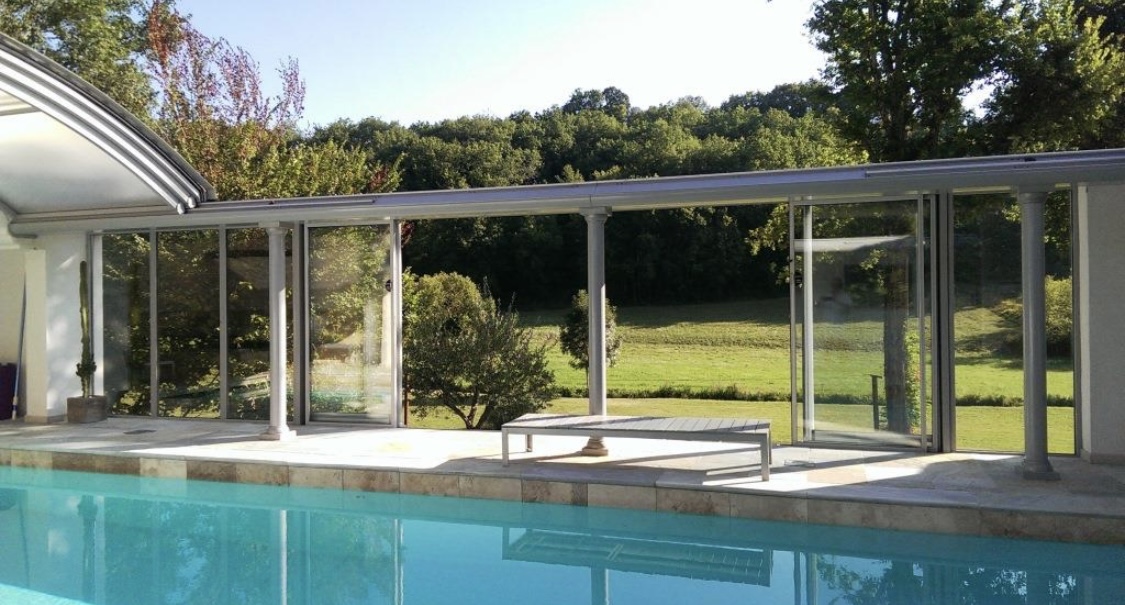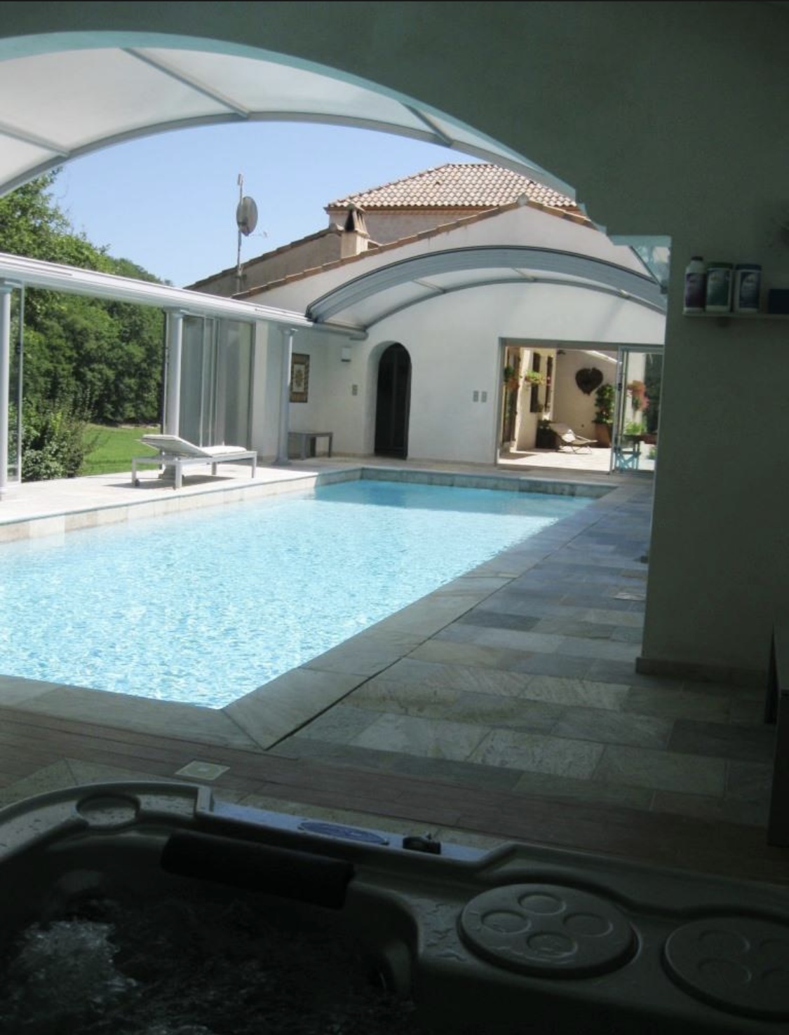• Ergänzung einer Schwimmhalle (160m²) mit elektrisch zu öffnendem Dach, bodentiefen Schiebetüren an drei Seiten, Fußbodenheizung und einem 12 x 4 m großen Pool mit verdecktem, elektrischem Rollo, Whirlpool für 3 Personen, Dampfsauna für 4 Personen mit Glasmosaik, separatem Raum mit maßgefertigter Naturstein-Dusche und Waschbecken, Bose-Lautsprecher mit Fernbedienung