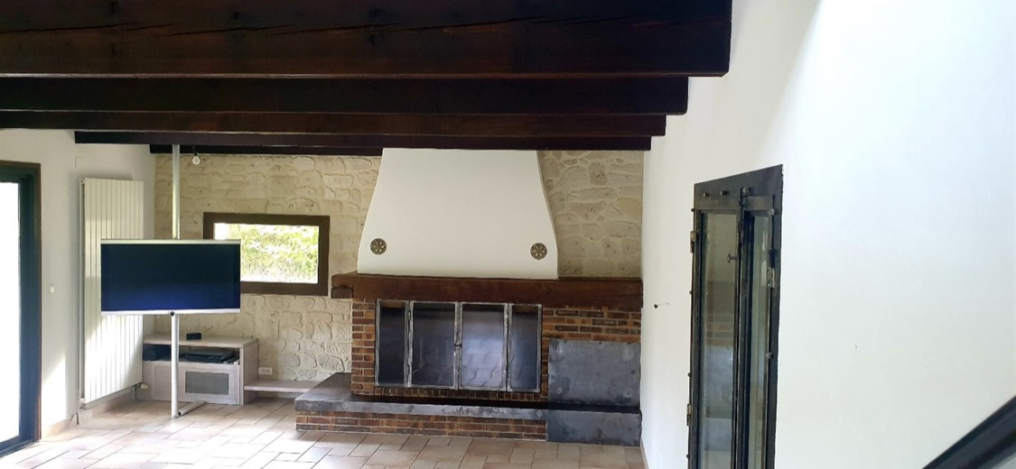 • Wohn-/Esszimmer (41 m²): Großzügiger Raum mit großem Kamin, Bose-Anlage mit Tv und angeschlossenen Lautsprechern in verschiedenen Räumen