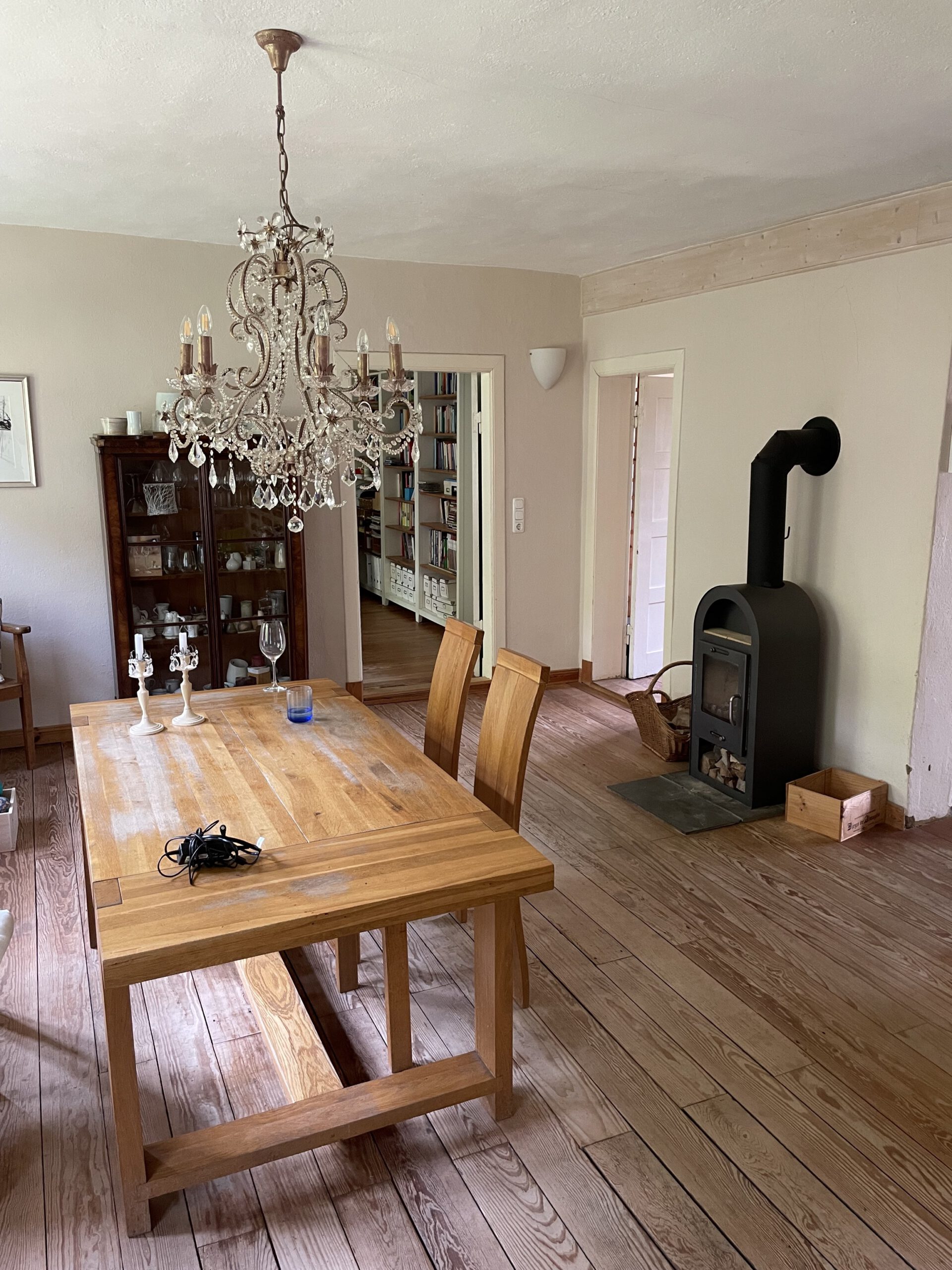 An den Essbereich schließt sich ein weiteres Zimmer an. Derzeit wird die als Wohnzimmer und Rückzugsort genutzt.