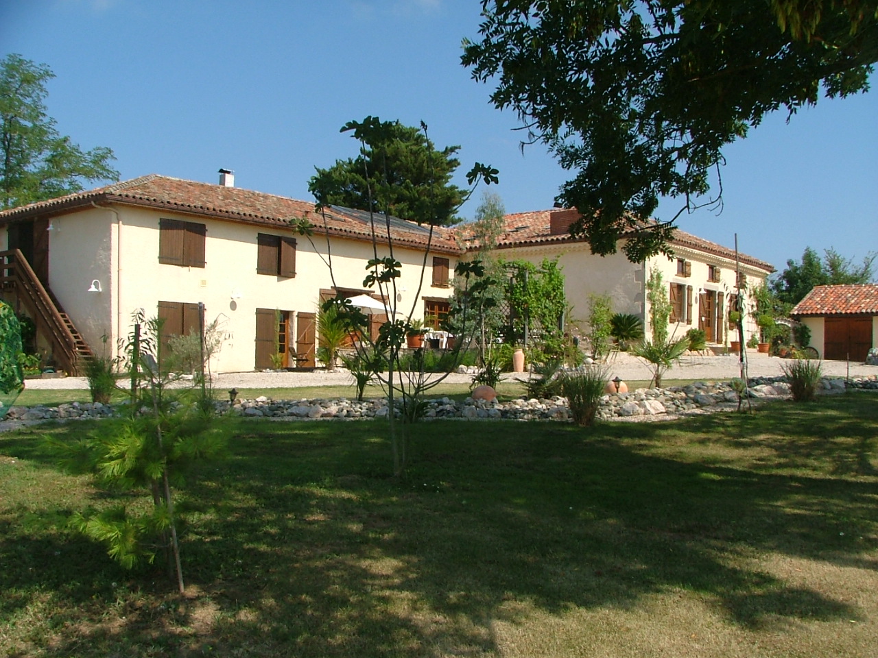 Bezirk: Haute-Garonne (Frankreich), südlichster Zipfel der Gascogne, Midi Pyrenees Lage: zwischen: L‘ Isle en Dodon und Aurignac mit Panoramablick auf einem See (Naturschutzgebiet)! Unberührte Natur – sehr ruhig – dominante Lage, Sackgasse. ERDGESCHOSS + Stockwerke Detail auf Anfrage ( 12 Schlafzimmer – große Küche 45 qm mit Brotbackofen und Vorratsraum – Esssaal 65 qm – Kaminzimmer / Bibliothek ca. 30 qm – Wintergarten / Seminarraum ca. 60 qm verschiedene Badezimmer u.s.w.) Ausstattung Elektrizität – Telefon – Internet WLAN – Gastank – Niedertemperatur-Heizungssystem 55/45 mit PV+Wärmepume + WP für WW – Schwimmbad 12 x 6 m mit Abdeckhaube und Solar – Sauna mit Duschen innen und außen– Terrasse ca. 80 qm – Grillplatz mit großem Schwenkgrill – großes Holzhaus für Traktor und Gartengeräte – 2 Garagen mit Werkstatt – Fußballplatz, Beach-Volleyballfeld – Teich ca. 200 qm mit Bachlauf – ca. 1 ha mit Obstbäume, Wiesen, Gartenanlage, Steingaten und Gemüsegarten – Bausubstanz Lehm- und Natursteine, im EG alles rote Terrakotta Fliesen, im OG alles Pinienhölzer. Nutzungsmöglichleiten: Ferien-Hotel – Seminarhaus – Restaurant – Pension – Seniorenresidenz – Kapitalanlage – Gemeinschaftsobjekt für eine Lebensinsel – Mehrgenerationenhaus – betreutes Wohnen – geistiger oder kultureller, künstlerischer Ort – Ort der Erholung, Seminare u.s.w… Oder idealerweise das Bio-Ferienobjekt mit einem guten Gästestamm weiterführen. Die Eigentümer helfen auch gerne bei der Einarbeitung.
