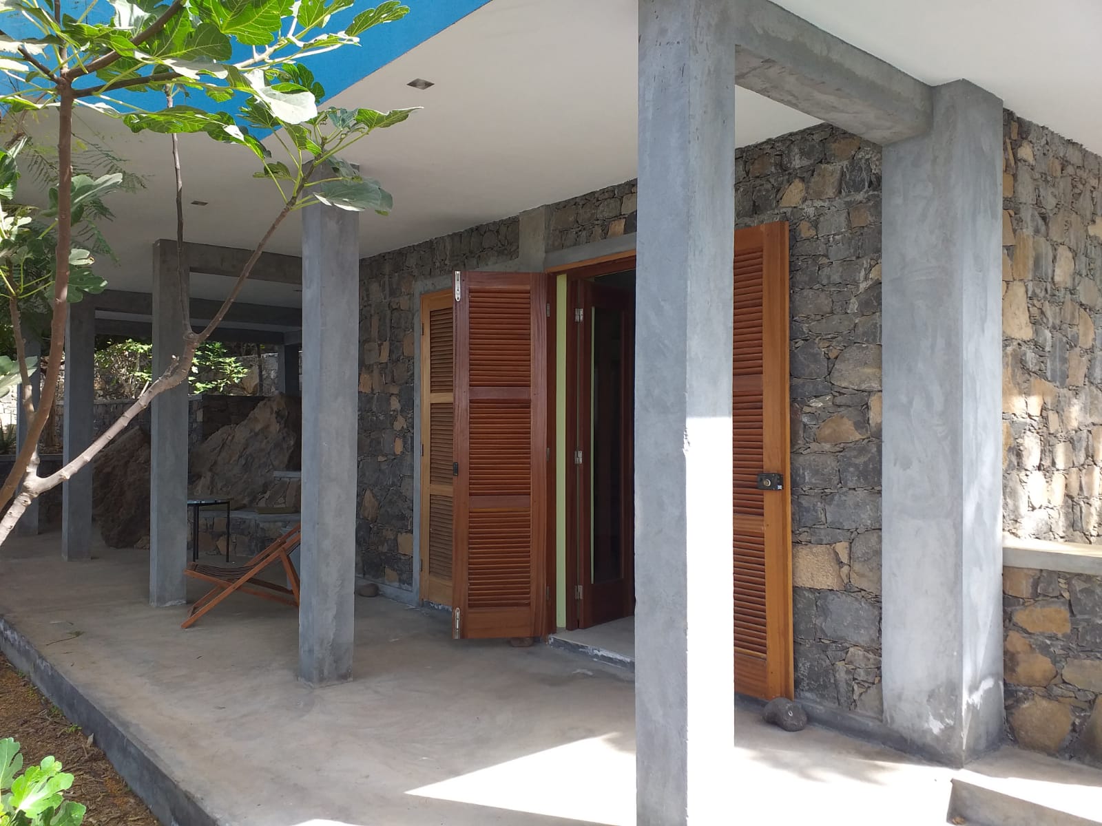 Das Hauptgebäude besteht aus dem Untergeschoss (Wohnschlafraum mit Dusche/WC, 27 m²) sowie einem vollüberdachten Felsenraum mit 85 m². Im darüberliegenden Stockwerk mit Balkon (131 m²) befinden sich zwei Schlafzimmer, ein großzügiger Salon, eine offene Küche, Abstellraum, Badezimmer, zwei WCs und Treppenhaus zur teilüberdachten Panoramaterrasse (120 m²). Auf Qualität und Nachhaltigkeit beim Innenausbau wurde viel Wert gelegt. So bestehen alle Böden aus portugiesischen Keramikfließen, Türen und Fenster aus Mahagonivollholz. Die Raumhöhen von über drei Metern sorgen für ein gutes Klima. Warmwasser wird über eine Solaranlage erzeugt. Die Stromversorgung erfolgt über Photovoltaik oder das öffentliche Netz. Zusätzlich zur Direktleitung mit reichlich frischem Quellwasser ist ein Tank (1000 L) vorhanden. An Natursteinmauern vorbei über Treppen und Wege erstreckt sich der exotische Garten mit Dattel- und Kokospalmen, Maracujas, Bananen-, Papaya-, Feigen-, Mango-, Noni- und Avocado-Bäumen, Oleander, Bougainvilleas etc. auf 1.521 m². Zu zwei großen Pools gehört ein Bewässerungssystem mit Wasserrecht. Weiter gibt es ein Nebengebäude 18,5 m² mit überdachter Terrasse, Pavillon, Natursteingrill sowie Außendusche.