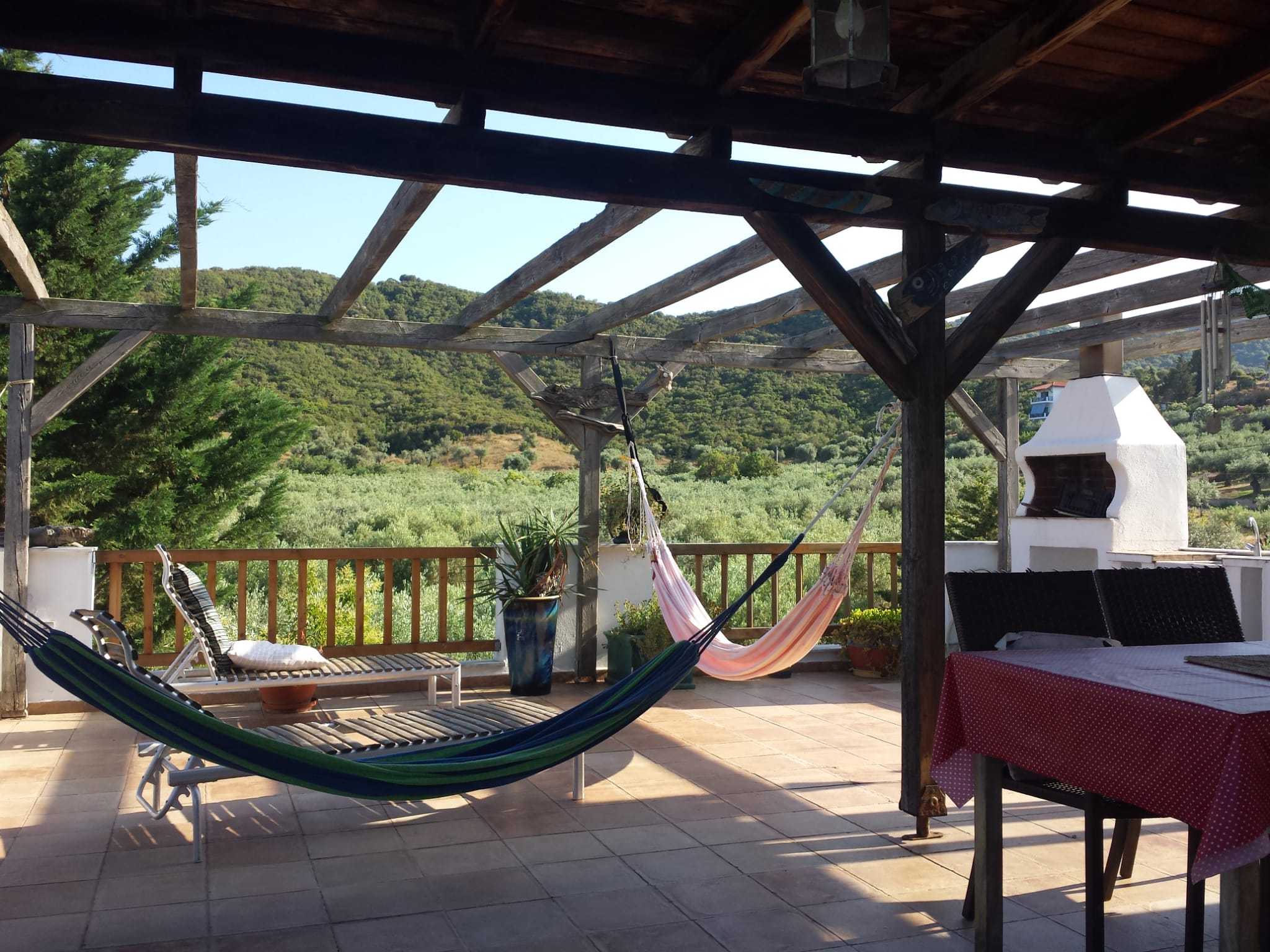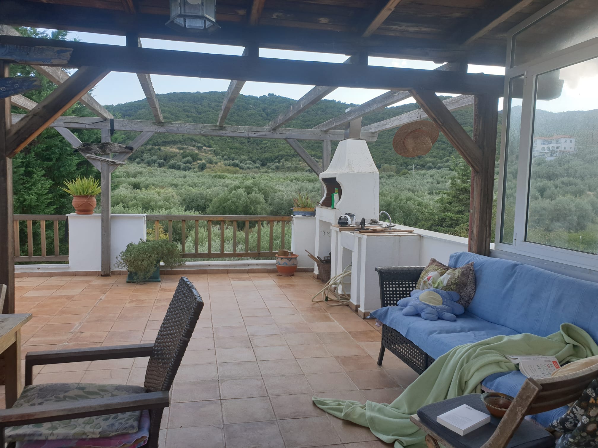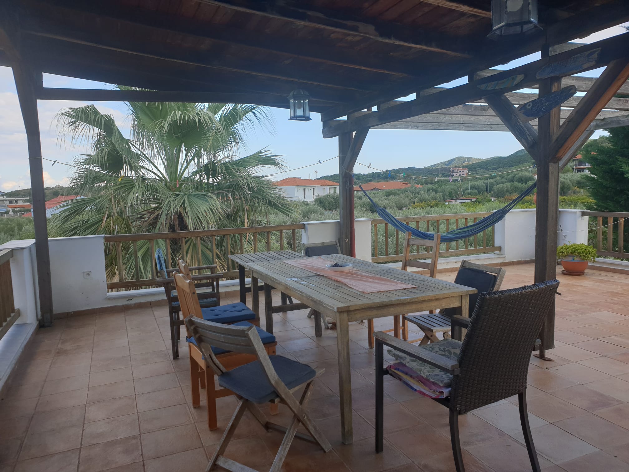 Zwei Dachterrassen mit wundervollem 360° Blick auf Athos und das Meer. Teilweise überdacht mit Außenküche (Grillplatz und Waschbecken).