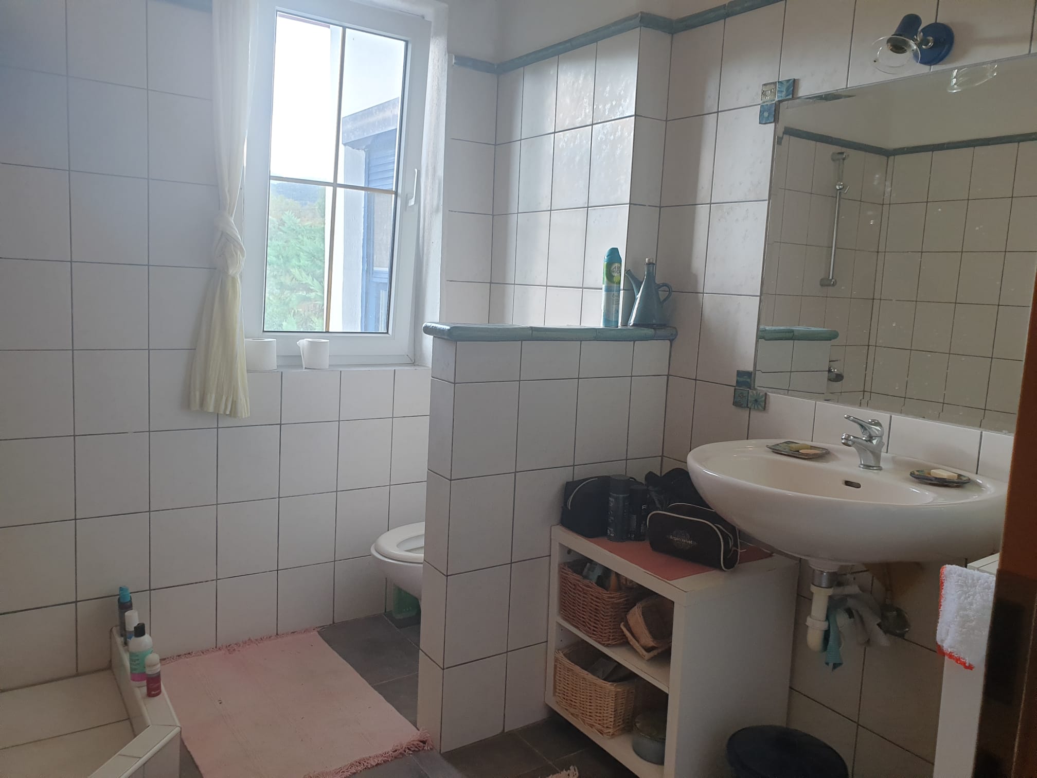 Wohnküche, Schlafzimmer, Bad mit Fenster, Dusche und WC, Zugang zum Garten